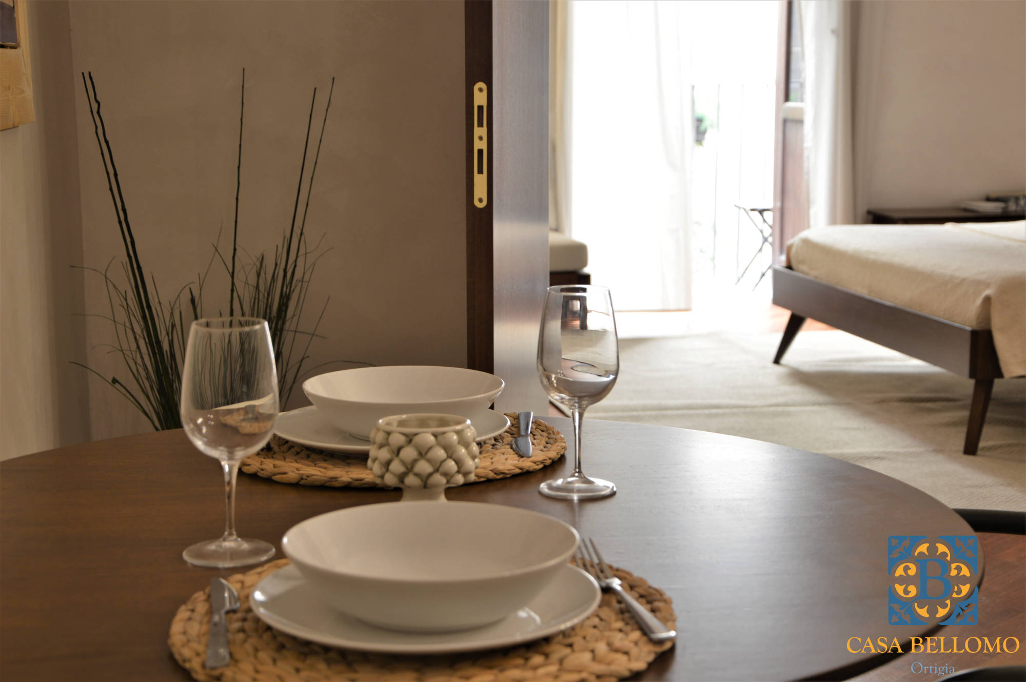 Nel salotto di Ortigia è ubicata Casa Bellomo, un appartamento di 50 mq posto al primo piano di un antico stabile. Può ospitare fino a tre persone.